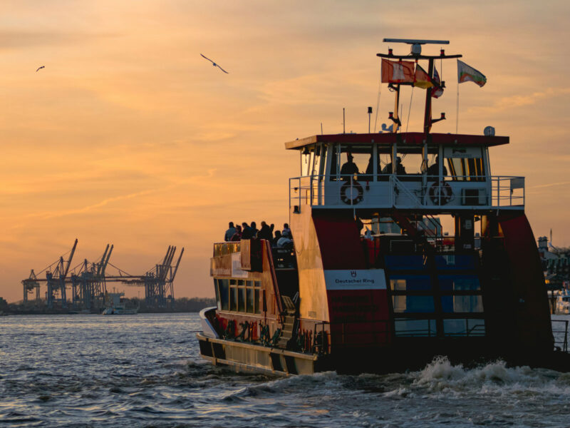 Die Fähre startet direkt am Op’n Bulln und endet in Cranz, von dort kann man eine Fahrradtour durch das Alte Land unternehmen. Zum Preis eines Bustickets (gehört zum HVV).